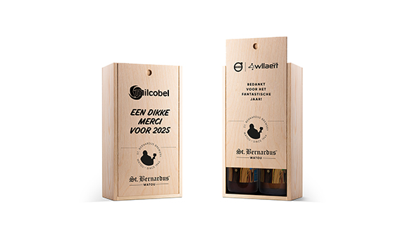 Op zoek naar een cadeau met net dat tikkeltje meer? Ontdek ons houten kistje, gevuld met Hemelse Nectar (2 x 75cl), waar je zelf jouw persoonlijke boodschap en (bedrijfs)logo op kan plaatsen.